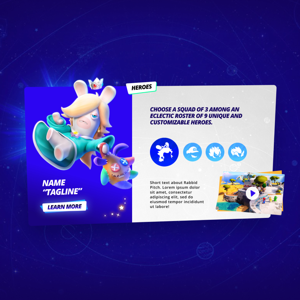 Pour la sortie du jeu, le site adopte des codes graphiques spécifiques au secteur du jeu vidéo, tout en respectant des contraintes techniques, visuelles et légales.